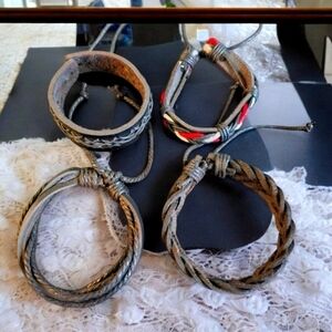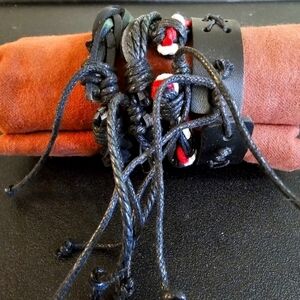 Adjustable Black Leather Wristbands Bracelet Set Unisex. For Women, Men and Youth. Size 6.5-8. New without tags. Never worn. Please see the pictures.