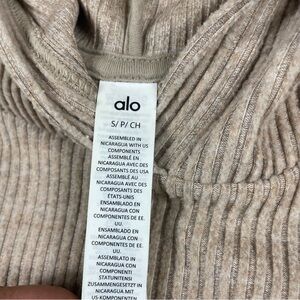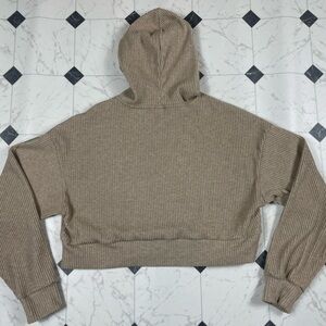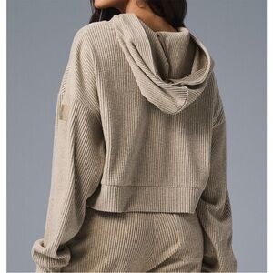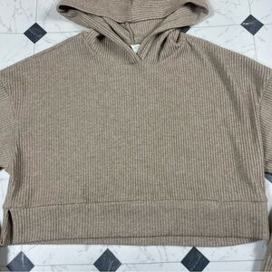 ALO Yoga Muse Hoodie Ribbed Gravel Heather Tan Cream Women Size Small Pullover