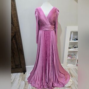 Mac Duggal 26542 Pleated Long Sleeve V-Neck Gown NWT size 8 Lilac/Pink