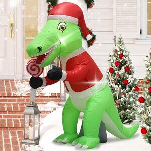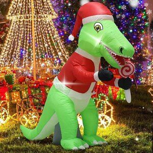 * Holiday decorations: Our 4-foot Christmas inflatable Dragon in a Santa hat and red suit is very cute and cheerful, holding lollipops and looking forward to playing with you and your children, creating a warm atmosphere and adding charm to your Christmas decorations.