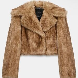 Zara Chic faux fur coat by Zara. Soft tan golden brown texture. Perfect for stylish warmth. Sz Medium