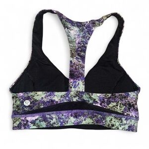 Experience comfort and style with this women's Lululemon sports bra, featuring a vibrant purple and black design. Perfect for workouts or casual wear.