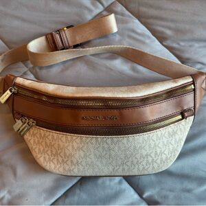 Elegant Michael Kors belt bag in tan and brown. Ideal for daily essentials.