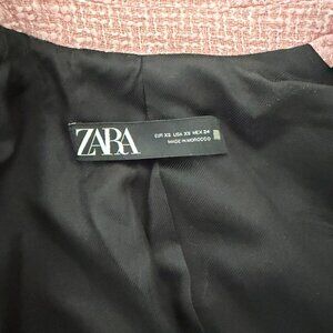 Pink tweed Zara double-breasted blazer with contrast piping