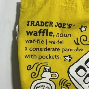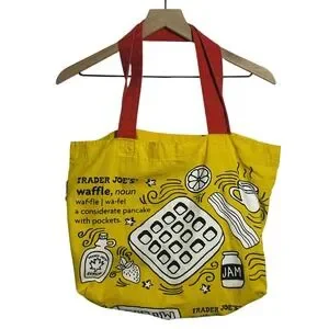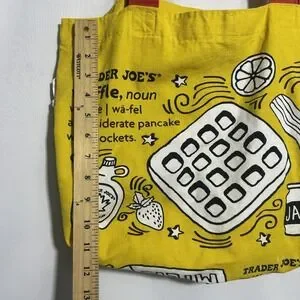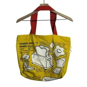 Trader Joe's Breakfast Toast Waffle Yellow Canvas Tote Bag Red Handles Grocery