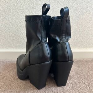 Step out in style with these sleek black platform heeled boots. Perfect for any occasion, these boots add a bold touch to your ensemble.
