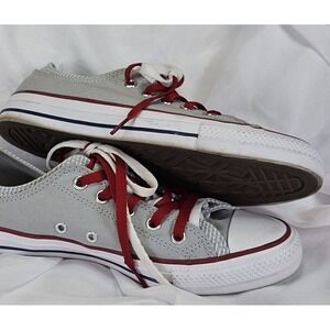 CONVERSE Double Upper Grey & White Sneakers Red And White Laces- Size 9