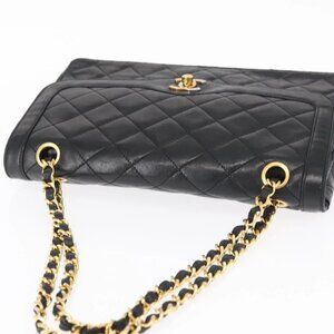 CHANEL Matelasse 25 Double Flap Paris Only Bag Lamb Skin Black CC Auth 156054
