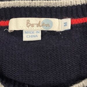 Boden Navy Sweater with Red and White Reindeer Design