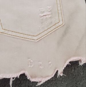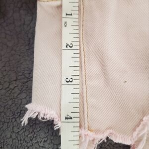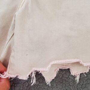 New without tags. Please note: after washing, some pink color transferred onto the fabric, giving the shorts a light pink hue instead of the original off-white. Also, there are a few dark lines that appear intentional in the fabric—not stains. These changes give the shorts a one-of-a-kind, altered look. See photos for details.