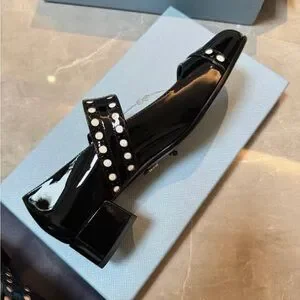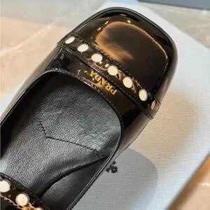 Prada Women's Black Patent Leather Flats with Studded Straps