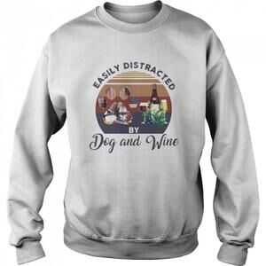 Easily Distracted By Dog And Wine Funny Meme Gift Sweatshirt