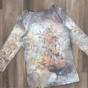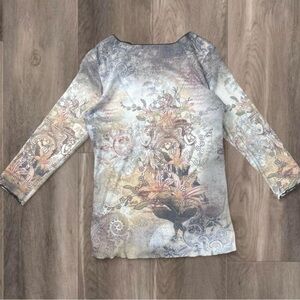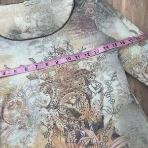 Vintage 2000s Women's 3/4 Sleeve Top - Dreamy Bling Birds & Florals Size S/M