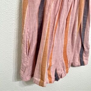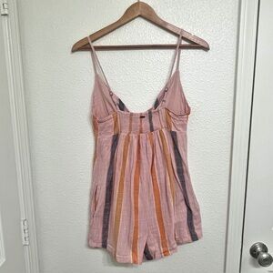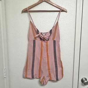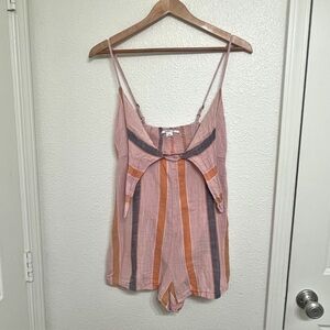 O'Neill Tatum Tie Front Romper Pink Striped Retro Beach Size Medium
