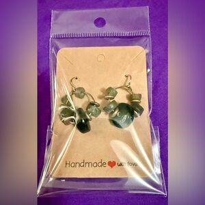 Elegant handmade earrings featuring beautiful glass green beads and stones. Perfect for adding a touch of nature-inspired charm to any outfit.