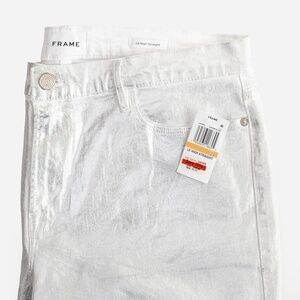 NWT FRAME Le High Rise Straight Ankle Jeans in Chrome Blanc Foil $278 - Size 33