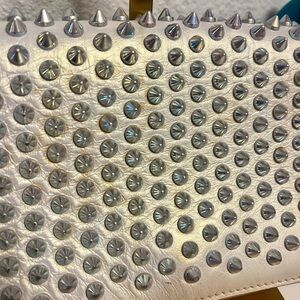Christian Louboutin Metallic Silver Spiked Clutch