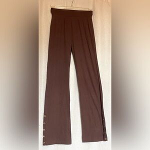 Chocolate brown. Ribbed. Elastic waist. Five snaps on outside of either leg. Am be worn open or closed. Crazy soft. Perfect for chilly weather. Previously loved (some pilling inner thighs) but lots of love left to give!