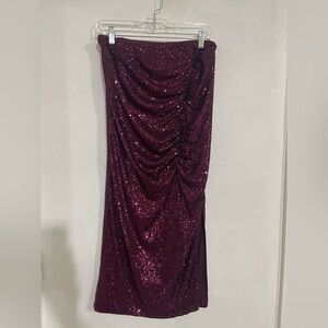 Wild fox side rouge maxi/midi sequin skirt burgundy L NWOT