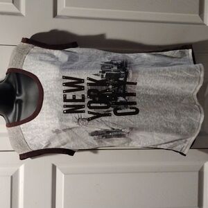 Cute top with new York city on it shadowed by the city very light colors of chocolate white black has glimmering up back and shoulder never worn new with tags