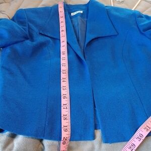 Ann May Blue Silk Open Front Blazer Jacket 4