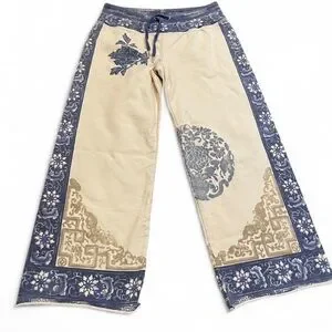 Lucky Brand Y2K Cropped Sweatpants Chinoiserie Porcelain Print Boho Size XS