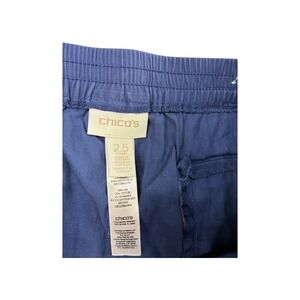 Keywords: Chicos pants, crop pants, cargo style, linen blend, elastic waist, blue pants, women's bottoms, casual wear, travel pants, summer pants, comfortable fit, utility pants