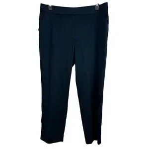 ST. JOHN Women's Size 14 Navy Blue Wool Blend Straight Leg Dress Pants Career