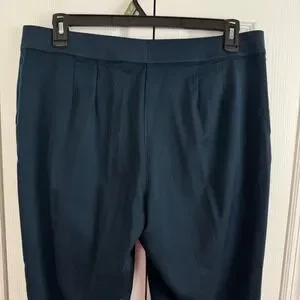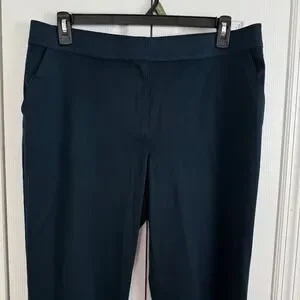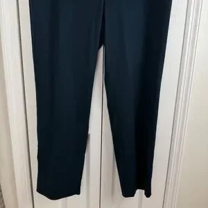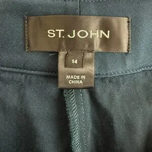 St. John, wool blend pants, navy dress slacks, women's size 14, career pants, luxury workwear, classic trousers, minimalist style, high end fashion, wool stretch pants, formal slacks, timeless basics, elegant outfit, navy wool trousers