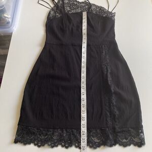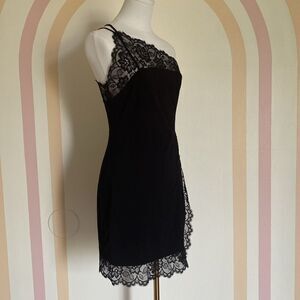 Free People Black Premonitions Lace Trim Bodycon One Shoulder Slip Dress Size M