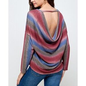 Women’s Striped Long Sleeve Sweater Low Back Detail Size M