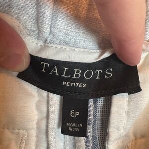 Talbots Petites linen blend striped pants. These pants feature a classic stripe pattern in shades of blue and white, a flattering wide leg silhouette, and a tie belt for adjustable comfort and style. Functional front pockets and rear welt pockets offer practicality, while the breathable linen blend ensures comfort in warmer weather.