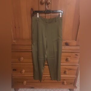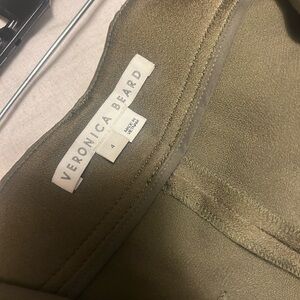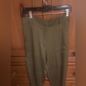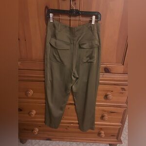 Veronica Beard Miranda Pant Olive Green Satin Crepe Pockets High Rise Si…