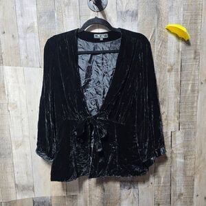 Details: long sleeve, Plunge v neck, tie front, polyester lined, velvet Material, lightweight