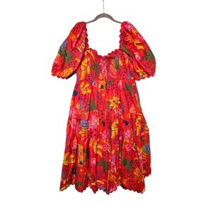 FARM Rio Good Vibes Red and Pink Floral Midi Dress