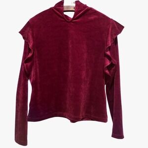 Hutch Top Womens M Rib Velour Mock Neck Burgundy Ruffle Witchy Gothic Victorian