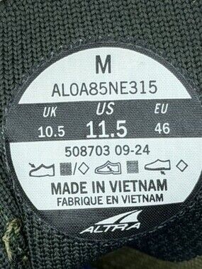 The Altra Escalante 4 Road Running Shoes in men's size 11.5 and green color are designed for running and jogging. With a low top shoe shaft style, lace-up closure, and solid pattern, these sneakers offer comfort and support for athletic activities. The Altra brand, known for its performance footwear, has a reputation for quality and innovation in the athletic shoe market. Made in Vietnam, these shoes are part of the Altra Escalante product line, known for their cushioned support and snug fit for runners. COD:A27