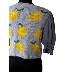 Keywords: Free People, Lemon Sweater, Knit Top, Cropped Sweater, Puff Sleeve Top, Gray Sweater, Yellow Lemon, Boho Sweater, Summer Sweater, V Neck Sweater, Short Sleeve Sweater, Small Size, Free People Top, Lemon Knit Top