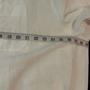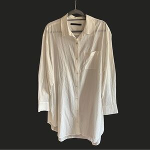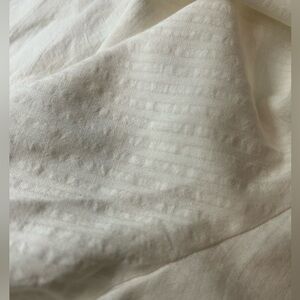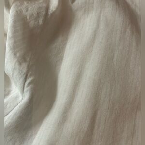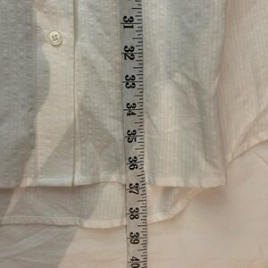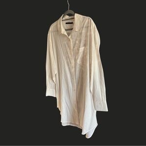 Beautiful oversized long button down in a semi sheer cotton blend with subtle white on white stripes.