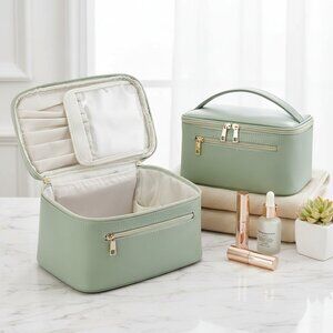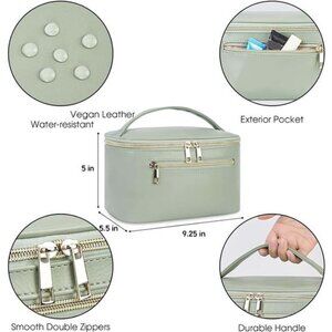 Vegan Leather: This sage green makeup bag organizer is made of premium vegan leather and has all of the comfort, softness, and water-resistant that you love. Also, well-padded design of sage green cosmetic bag provides great protection performance.