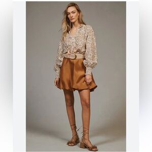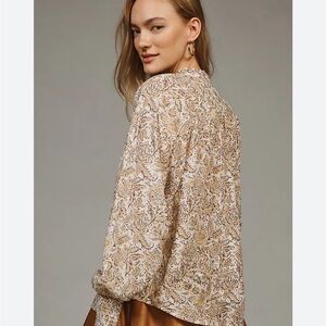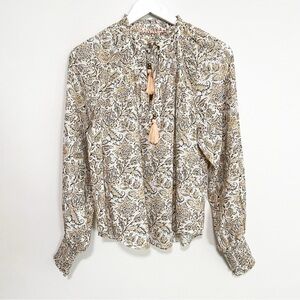 BOGO! Anthropologie Tie Neck Peasant Blouse Botanical Floral Print Size XS
