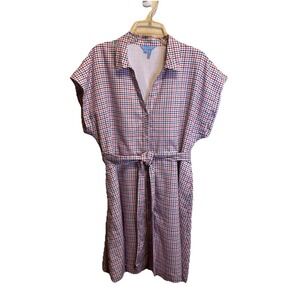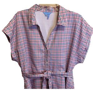Draper James Trisha Shirtdress Woman XL Cotton Dress Red White Blue Lined Button