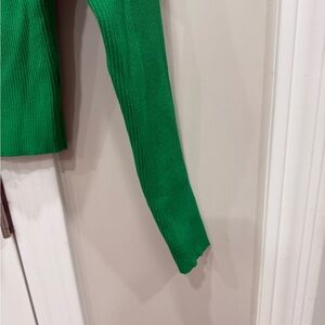 Women’s Vibrant green crop top with ribbed texture. Long sleeves and stylish cut-out design. Perfect for a bold look.