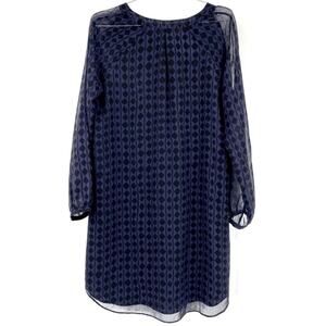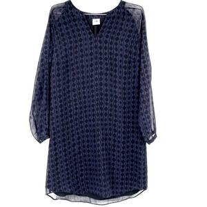 Cabi Harlequin Purple & Black Print Sheer Long Sleeve Shift Dress Small GUC