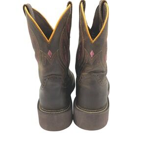 Justin GY9526 Western Cowboy Boots Womens Size 8.5B Brown Leather Pink Cowgirl