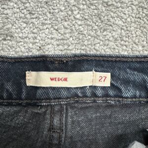 Levi's Wedgie Icon Button Fly Ankle Denim Jeans Women 27 Black High Rise Stretch