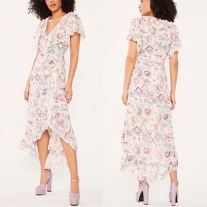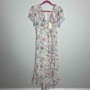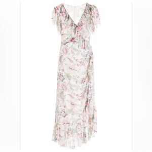 $455 CINQ A SEPT, Sheila Floral Ruffle-Trim Midi Dress NWT
