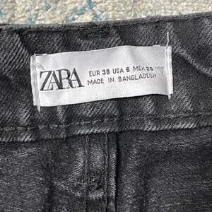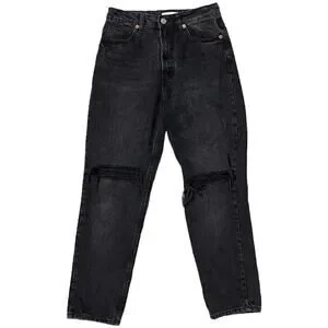 Zara Distressed High Rise Mom Jeans Black Size 6