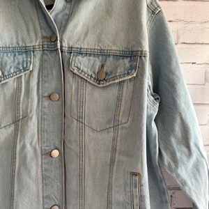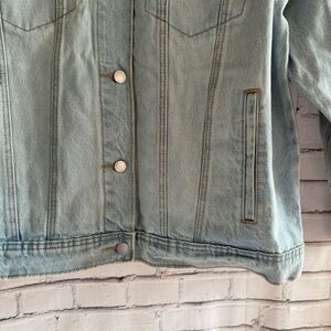 Stylish light blue denim jacket perfect for casual outings. Features a classic design with button closures. A versatile addition to any wardrobe.