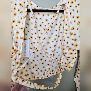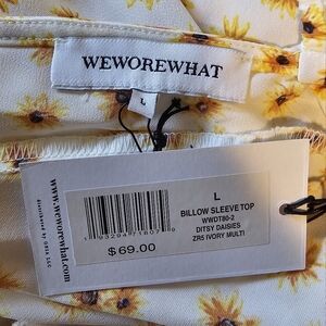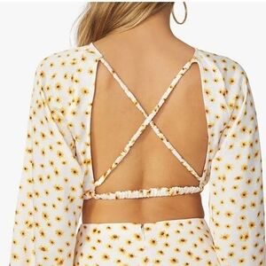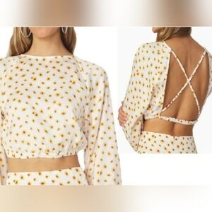 WeWoreWhat Ivory Multi Ditsy Daisies Billow Sleeve Open Back Top, Size Large